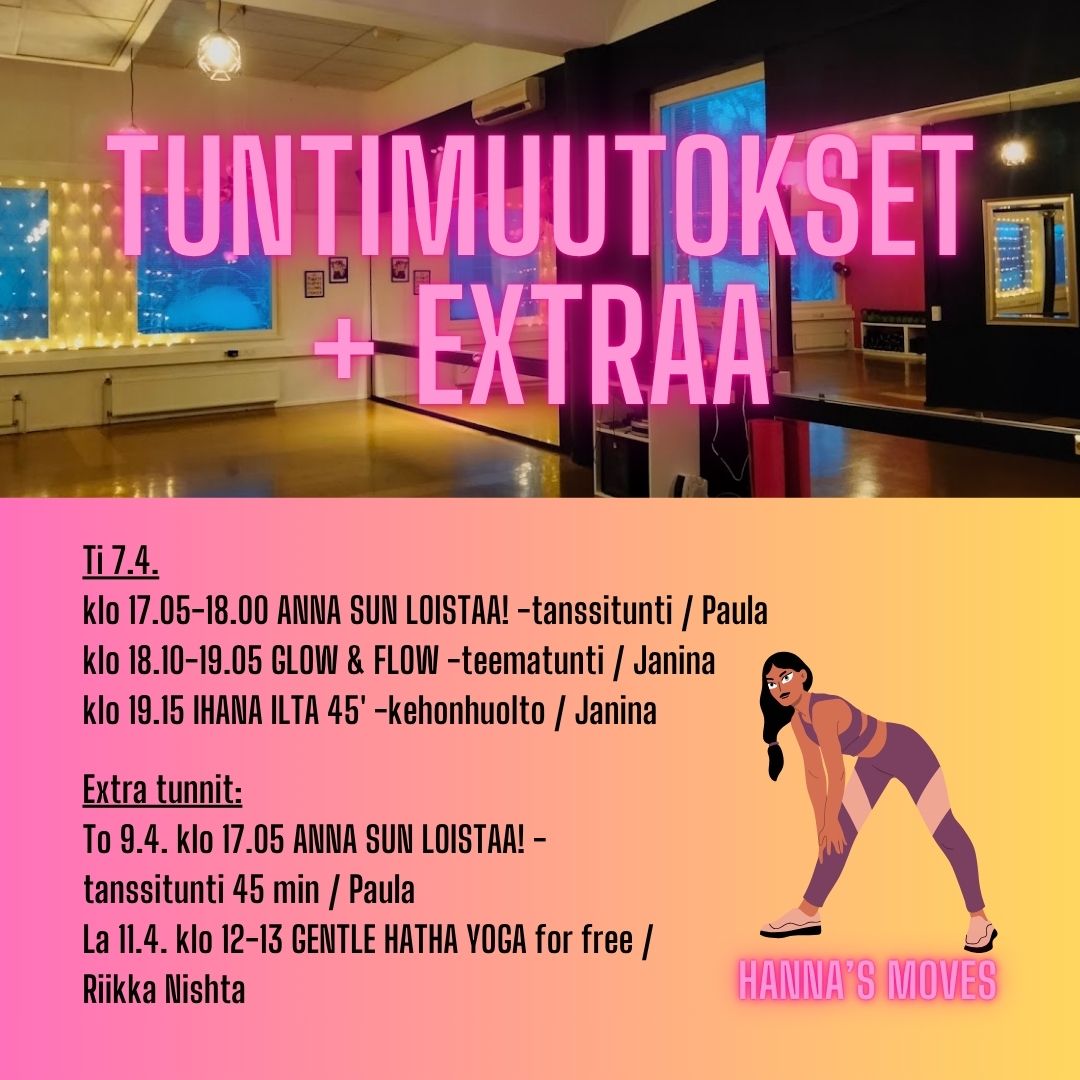 Viikko-ohjelmassa myös muutoksia viikoilla 14 ja 15! Katso ajankohtaiset tiedot varausjärjestelmästä https://www.varaaheti.fi/hannasmoves/fi