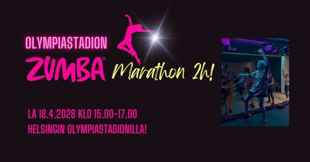Nimittäin Hanna's Moves aka Hanna's Zumba on varannut Helsingin Olympiastadionin (noh, ei ihan koko stadionia…vielä!) kahden tunnin Zumba® maratoonia varten la 18.4.2026 klo 15.00-17.00. Maasta se pienikin ponnistaa! Tätä on toivottu ja toiveet ne tuppaa toteutumaan, kunhan vaan sanoo ne ääneen. Tämä tapahtuma on osa Hanna's Zumba® 16v. juhlintaa. Vain 50 zumbaajaa mahtuu mukaan. Oletko Sinä yksi heistä?